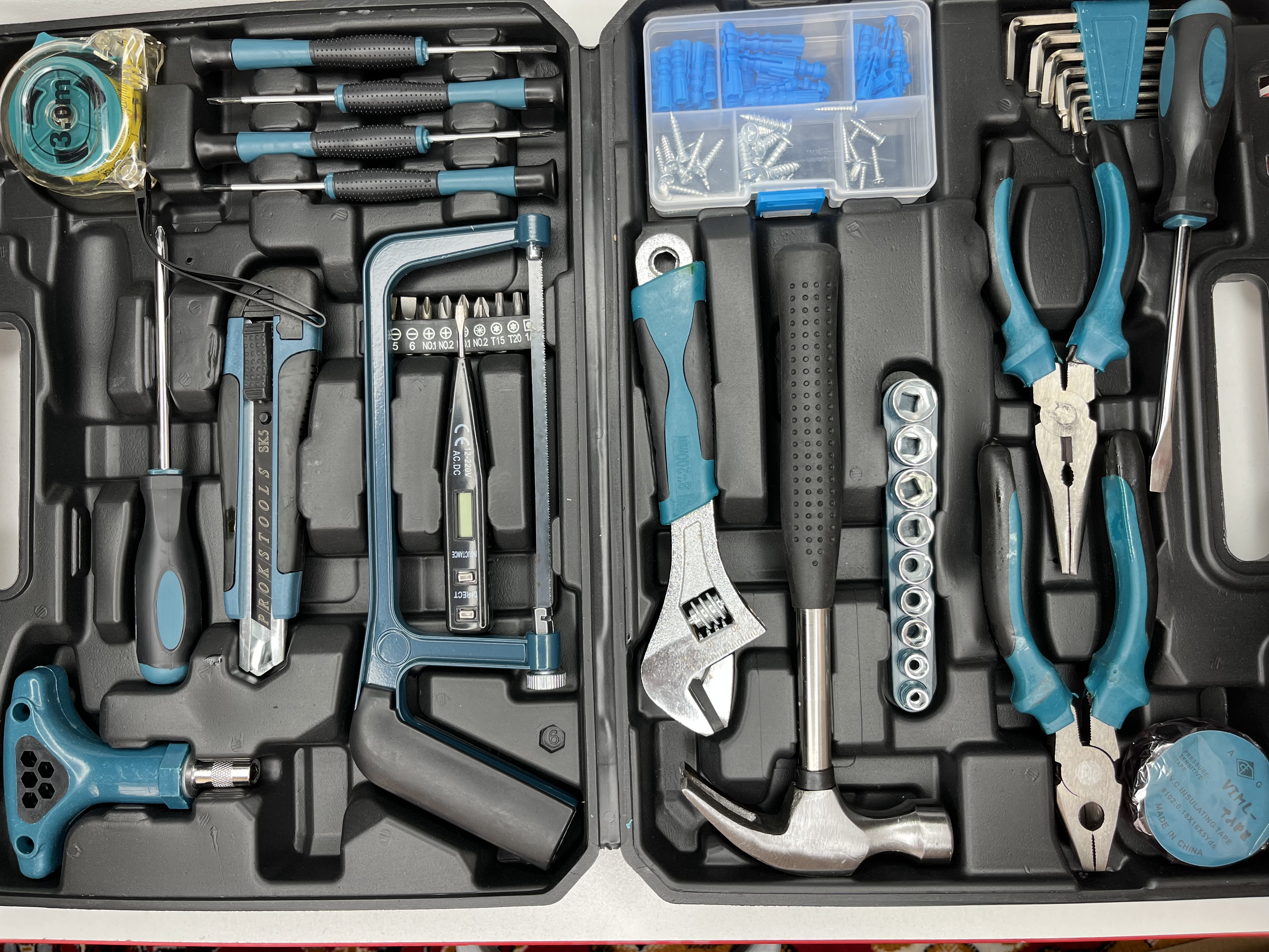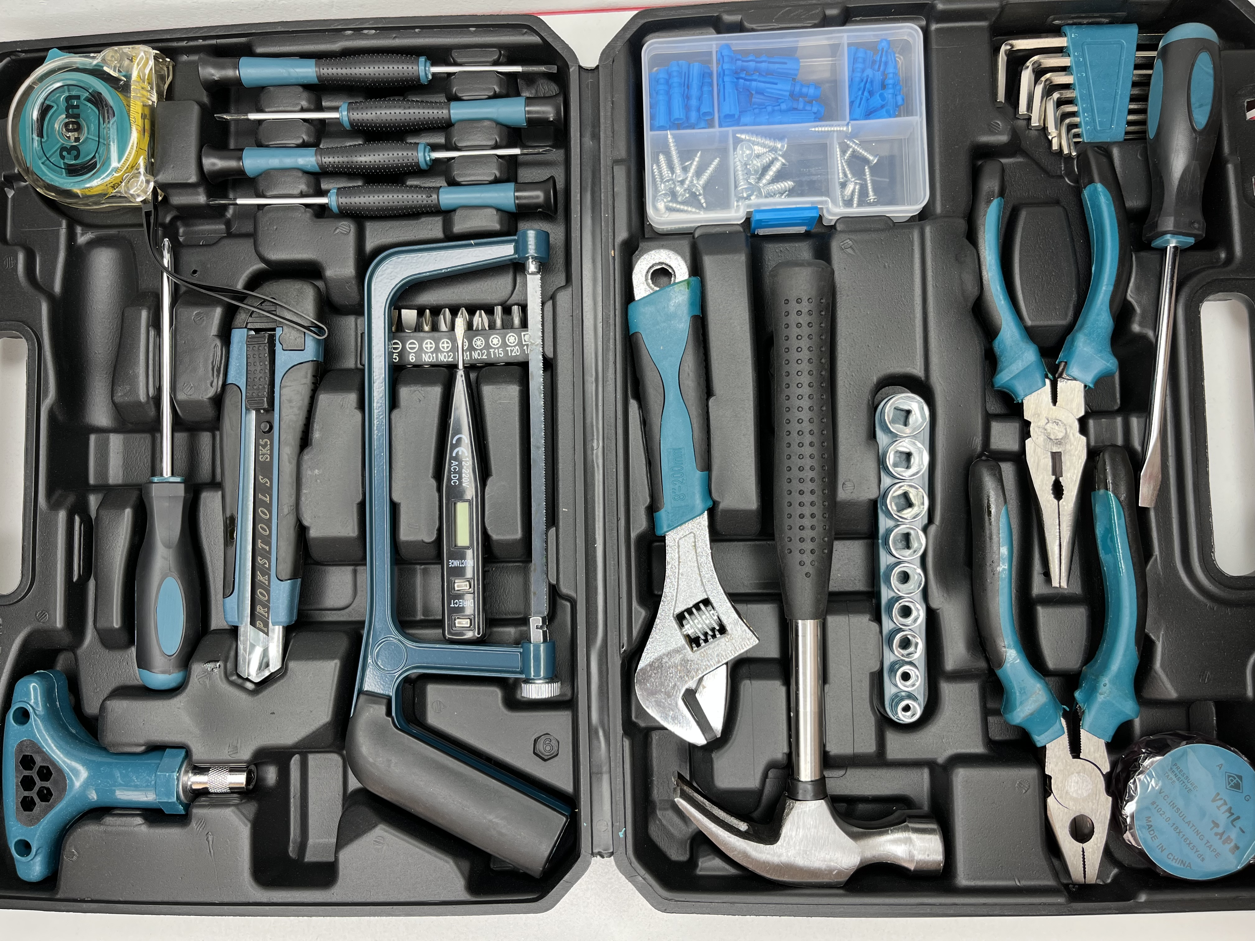 جعبه ابزار ۴۶ پارچه باس، یک ست کامل از ابزارهای ضروری برای هر خانه و کارگاهی است. این مجموعه شامل انواع آچار، بکس، پیچگوشتی و رابطهای مختلف است که در یک کیف مقاوم چیده شدهاند.
