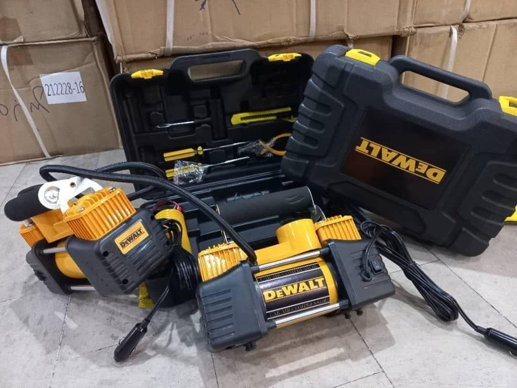 پمپ باد فندکی 2 موتوره دیوالت با لوازم یک وسیله کاربردی است که در صورت پنچر شدن تایر هایتان به شما کمک کند.مثلا زمانی که با ماشین تان در جایی بیرون از شهر قرار دارید و خودرو شما پنچر می شود و از آپاراتی و تعمیرگاه دور هستید می توانید به راحتی به کمک این پمپ باد تایر هایتان را پنچر گیری و باد کنید. این محصول دارای ولتاژ 12 ولت است و به کمک باتری یا فندک ماشین می توانید از آن استفاده کنید.