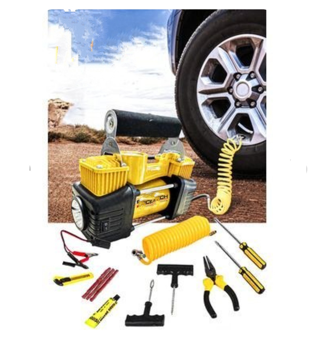 پمپ باد فندکی 2 موتوره دیوالت با لوازم یک وسیله کاربردی است که در صورت پنچر شدن تایر هایتان به شما کمک کند.مثلا زمانی که با ماشین تان در جایی بیرون از شهر قرار دارید و خودرو شما پنچر می شود و از آپاراتی و تعمیرگاه دور هستید می توانید به راحتی به کمک این پمپ باد تایر هایتان را پنچر گیری و باد کنید. این محصول دارای ولتاژ 12 ولت است و به کمک باتری یا فندک ماشین می توانید از آن استفاده کنید.