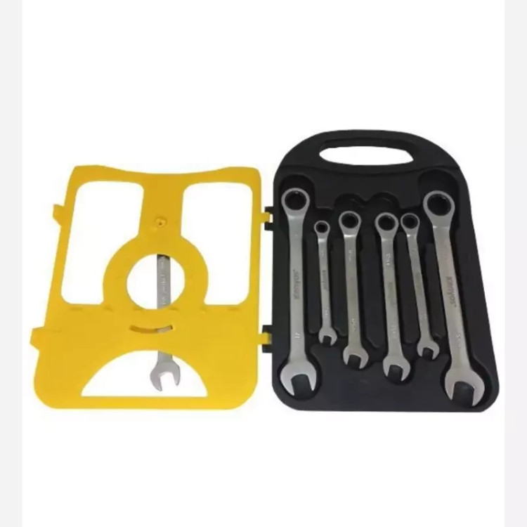 شماره آچار8 , 10 , 12 , 13 , 14 , 17 , 19 توضیحات آچار دارای مکانیزم 72 دنده ای فک متحرک بدنه سخت کاری شده آلیاژ کروم وانادیوم قابلیت چرخش 5 درجه در هر حرکت کاور نظم دهنده پلاستیکی