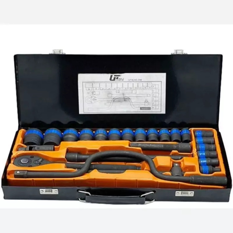 یک دسته بکس T شکل 250 میلیمتری با درایو 1/2 اینچ ✅دارای دو عدد اضافه کننده 250 و 125 میلیمتری ✅به همراه یک عدد لغلغه 16 میلیمتری عمیق ✅یک عدد هندلی درایو 1/2 سایز 400 میلیتر ✅ساخته شده از فولادChrome Vanadium ✅سطح با روکش مشکیPhosphate Black ✅یک عدد آچارجغجغه با درایو 1/2 اینچ ✅تولید شده به روشDrop Forged ✅ابعاد بستهبندی: 43*4.5*18 ✅دارای جعبه فلزی مقاوم ✅یک عدد لغلغه